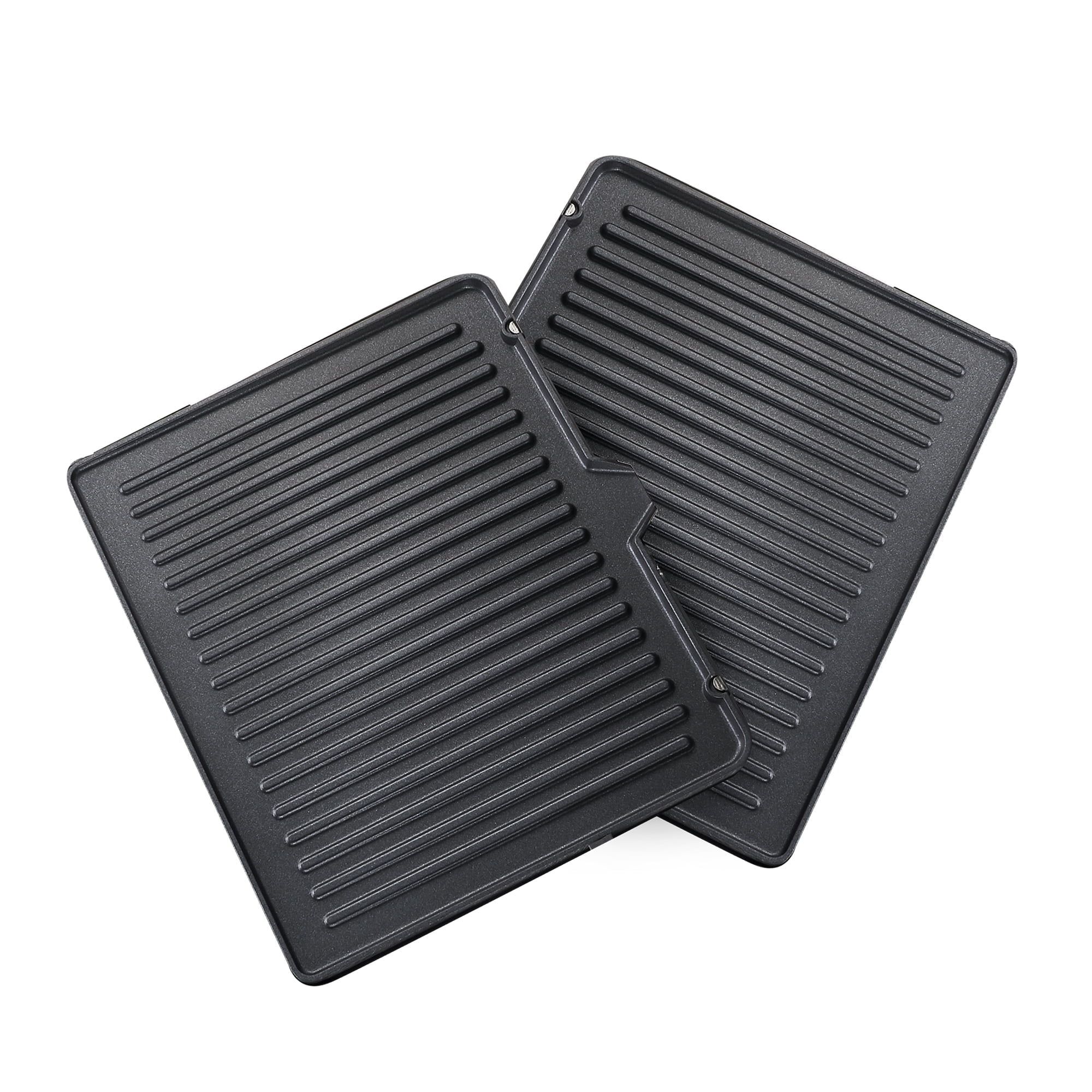 • Doble superficie antiadherente tipo parrilla/grill, muy resistente al rayado.