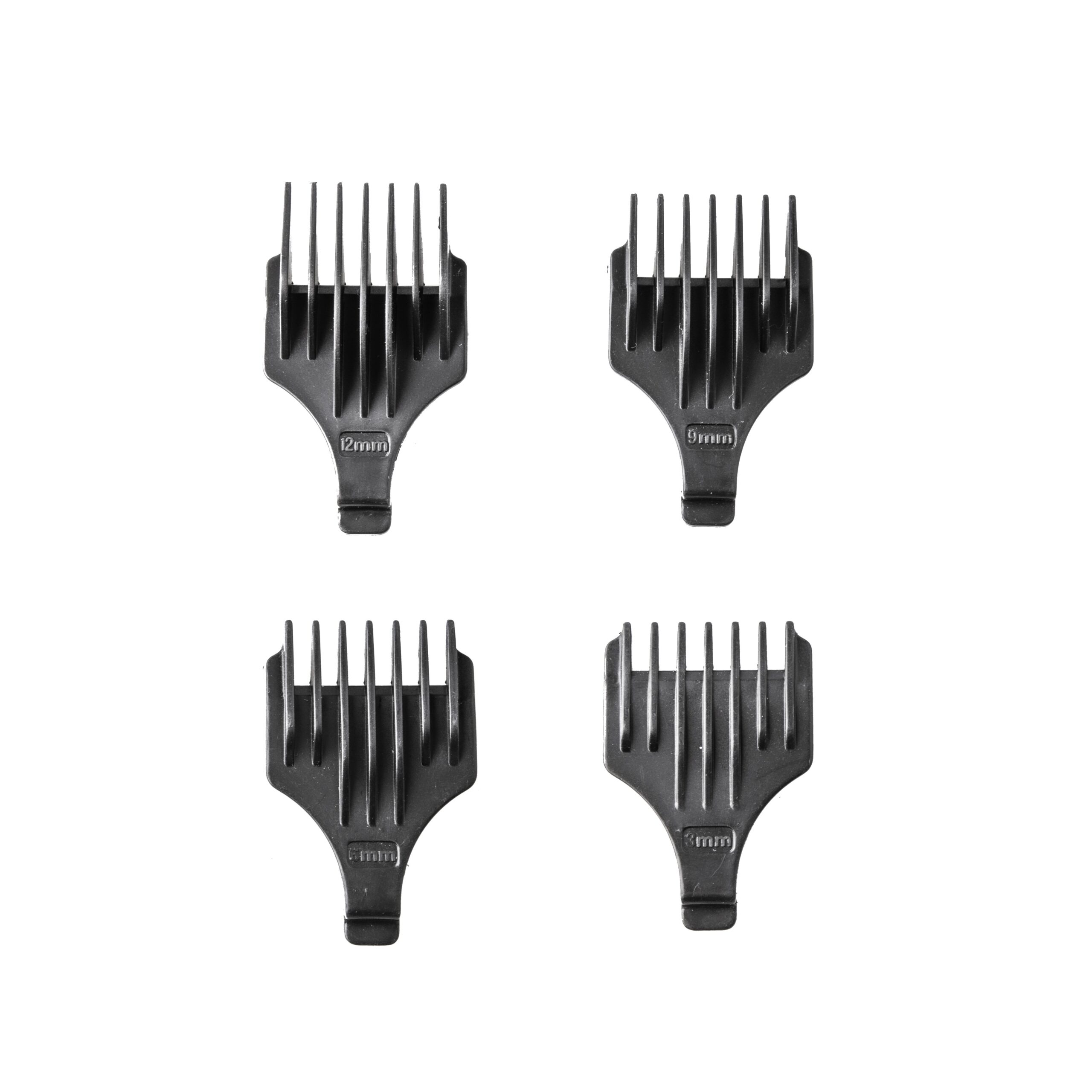 Incluye 4 peines guía: 3 mm, 6 mm, 9 mm y 12 mm.